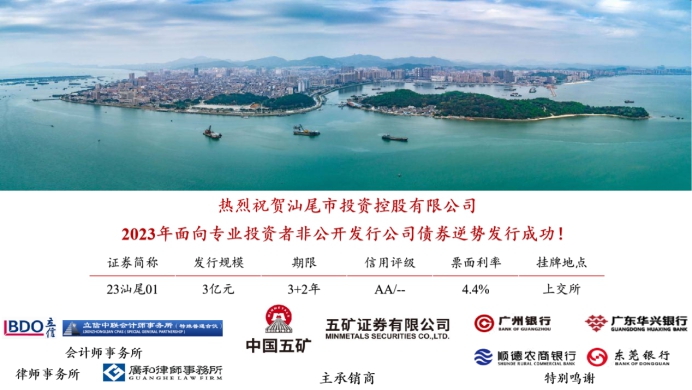 汕尾市投资控股有限公司2023年面向专业投资者非公开发行公司债发行成功